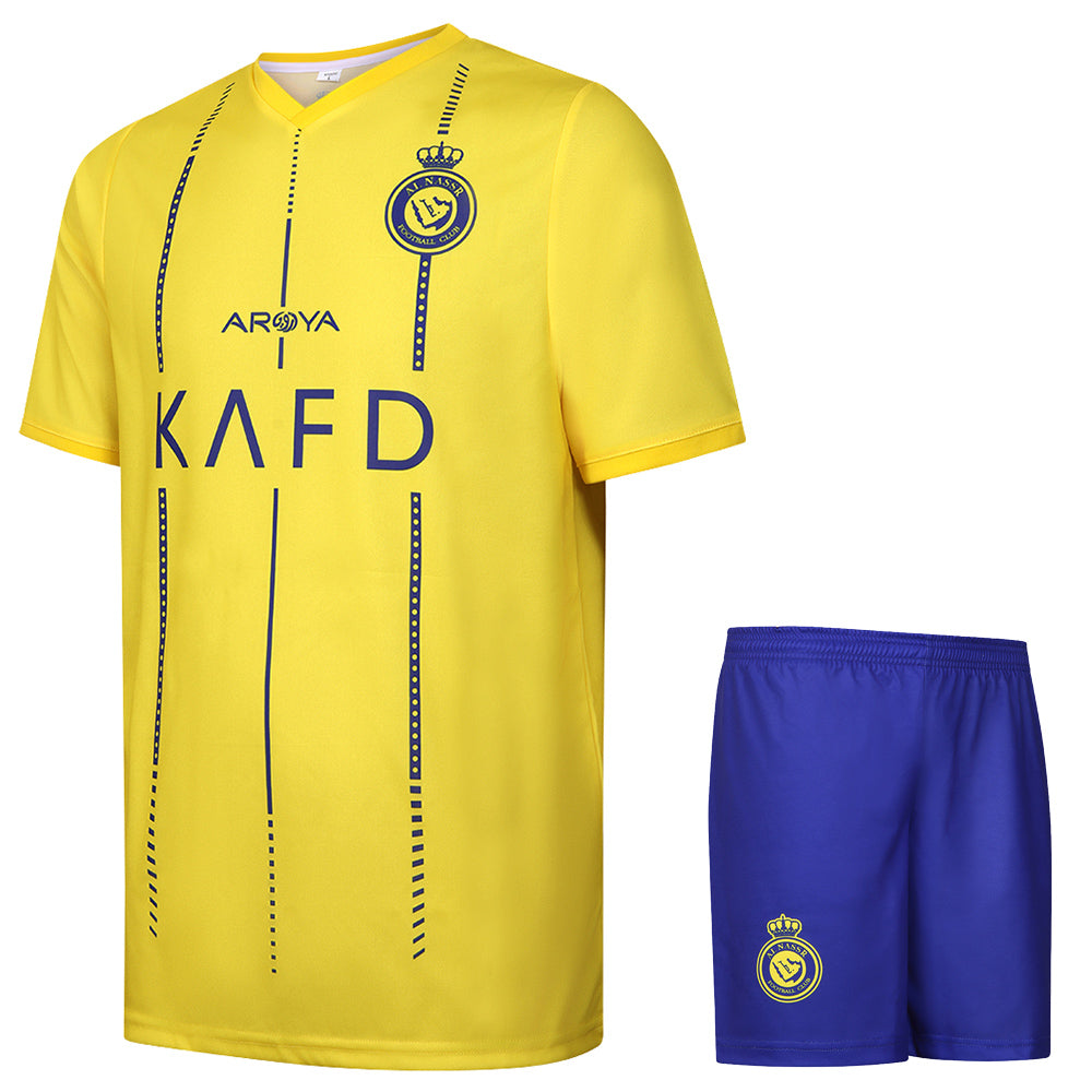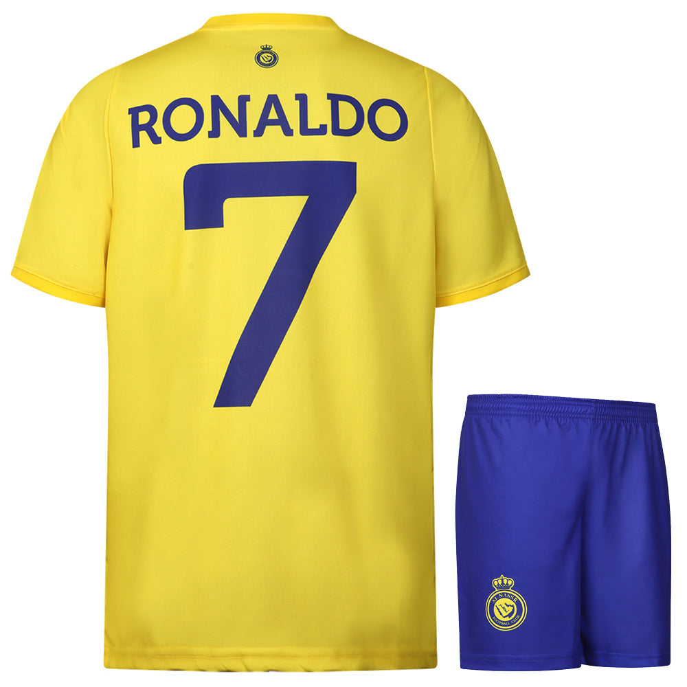 En tant que véritable fan de Ronaldo, vous suivez naturellement cette superstar partout. Même si c’est loin de chez nous à Al-Nassr. C'est pourquoi il existe désormais ce kit de football Al-Nassr avec imprimé Ronaldo 7 en 100 % polyester et disponible en tailles pour enfants et adultes. Grâce au tissu en polyester, cette tenue est souvent lavable sans perte de couleur et elle s'ajuste également confortablement. Le kit de football est livré avec un maillot et un short de football Al-Nassr.